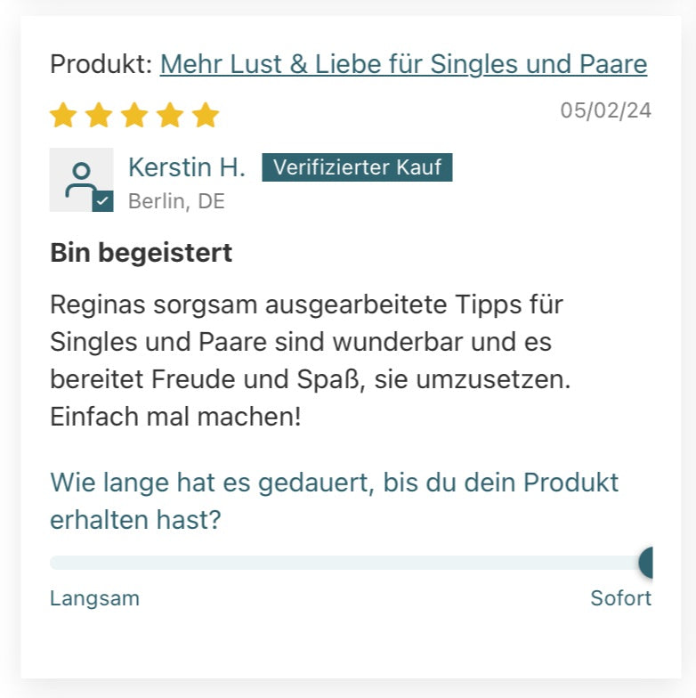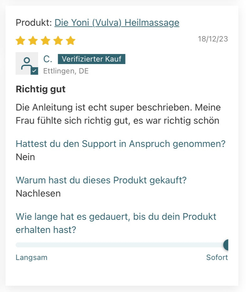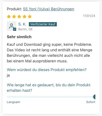 Der Kurs bringt mich meiner weiblichen Sexualität näher. Ich entdecke, was mein Körper wirklich will und was mir guttut. Die Videos sind total wertvoll und ich nehme da so wahnsinnig viel mit. Ich bin sehr sehr froh, dass ich mich zum Lustkurs angemeldet habe und mir wird erst jetzt bewusst, dass ich es bin, die etwas ändern kann. Diese Selbstbestimmtheit fühlt sich gut an.